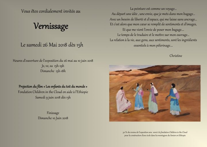 26 mai 2018 – Invitation au vernissage peintures et sculptures de Christine Collet au profit de la FondationEric Collet7 mai 2018